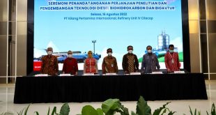 MarketNews.id PT Pertamina (Persero) mengembangkan penelitian dan teknologi diesel biohidrokarbon dan bioavtur. Upaya ini dilakukan dalam ikhtiar Pertamina untuk mempercepat ketahanan dan kemandirian energi bagi negeri. Komitmen kemandirian energi tersebut ditandai dengan penandatanganan antara PT Kilang Pertamina Internasional (KPI), PT Pupuk Sriwidjaja, PT Rekayasa Industri, Energi Baru, Terbarukan dan Konservasi …